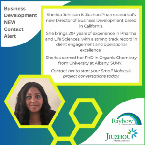 NEW BD Contact: Sherida Johnson September 29, 2025 Sherida Johnson is Jiuzhou Pharmaceutical’s NEW Director of Business Development. She’s based...